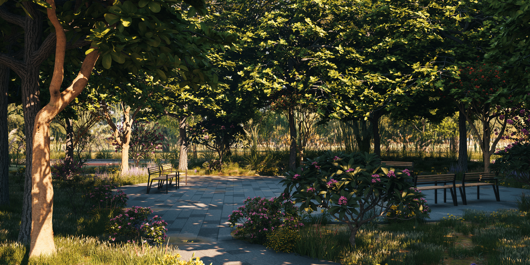 Our gardens are built with sustainability at their core. The incorporation of grasses, shrubs, and ground covers enhances biodiversity, while picturesque lakes and well-laid pathways seamlessly blend with the natural ecosystem to create a harmonious environment.