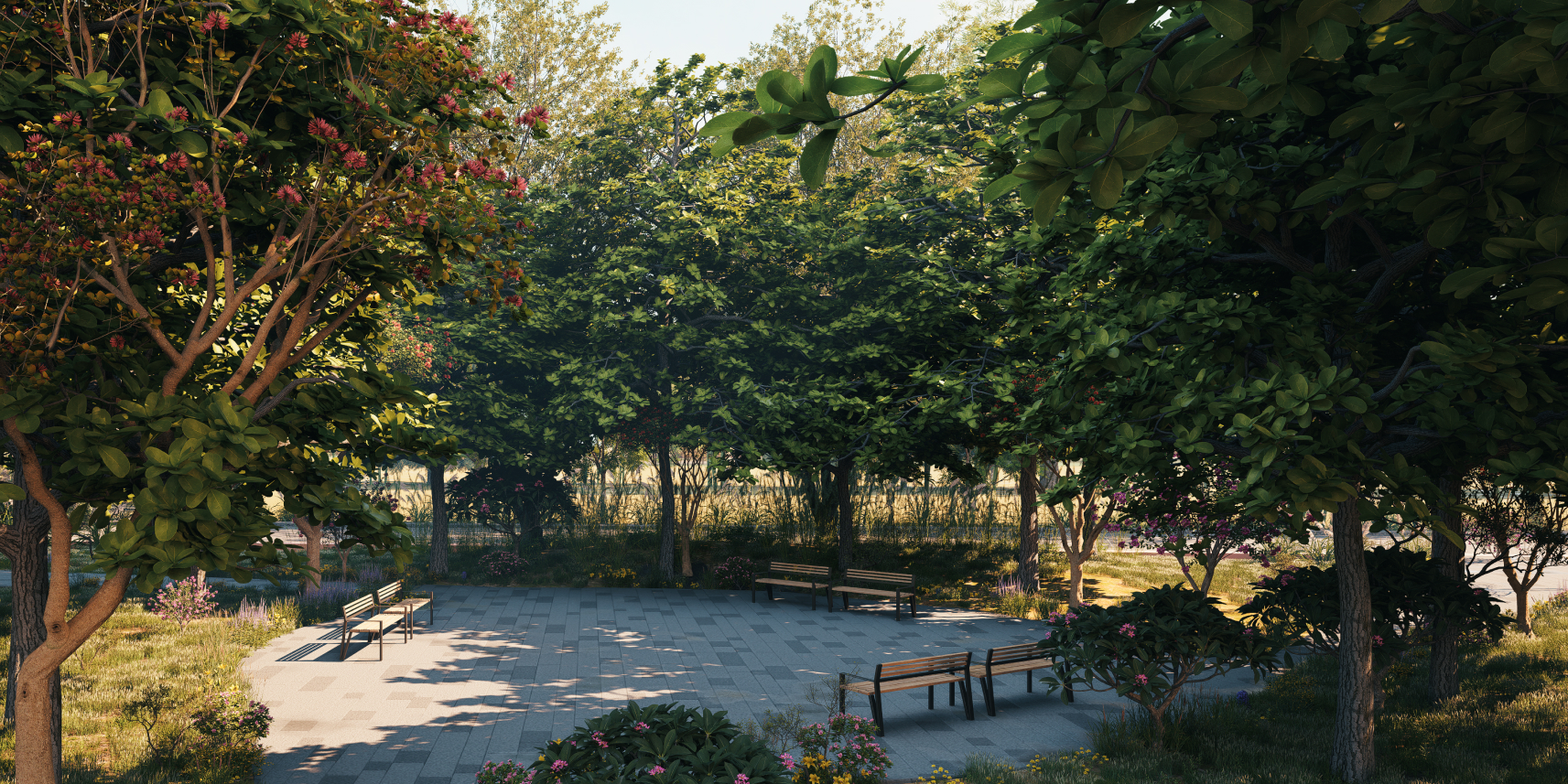 Our landscapes are crafted to create unique experiences. The Chikoo Orchards provide a serene space for peaceful walks, while the amphitheaters bring communities together for vibrant events and performances. The sanctuary areas serve as a perfect retreat for reconnecting with nature.